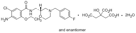 | Chemical Name | 4-Amino-5-chloro-2-ethoxy-N-{[(2RS)-4-(4-fluorobenzyl)morpholin-2-yl]methyl}benzamide monocitrate dihydrate |